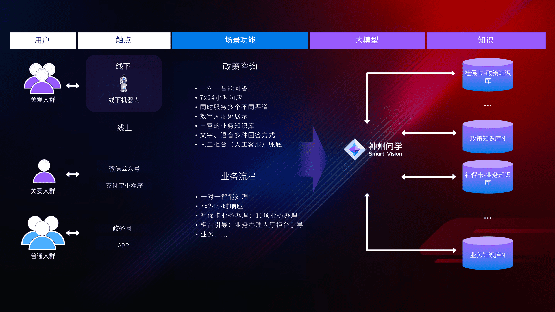 • 线上线下全覆盖:线上提供微信公众号、、、、支付宝小程序、、、政务网、、、app多种渠道,,与线下机器人形成完整服务体系。。。