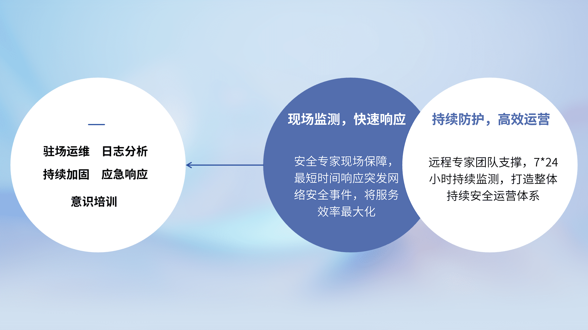 7X24小时持续监测安全事件,保持安全策略有效性,降低资产脆弱性风险,,,,精准拦截黑客攻击,,减少被黑客利用的机会,,,第一时间遏制,,降低损失。。。